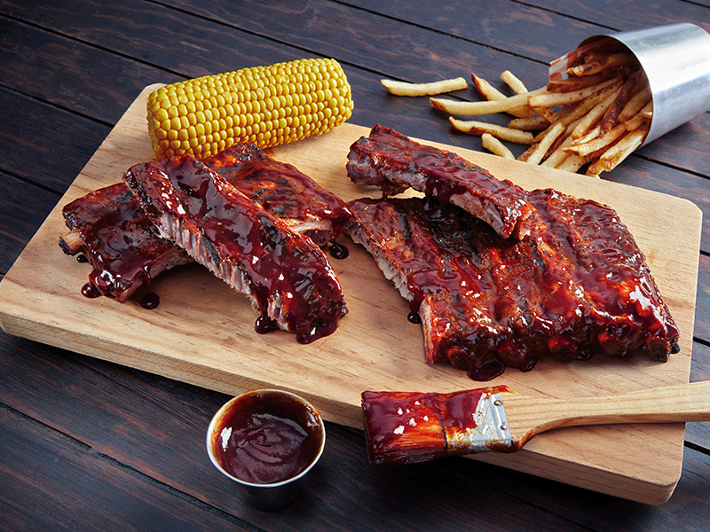 Applebee's MéxicoSecciones principales de la páginaJugoso costillar de cerdo asado a la parrilla y bañado con la salsa de tu elección. Se acompaña de papas fritas y elote.