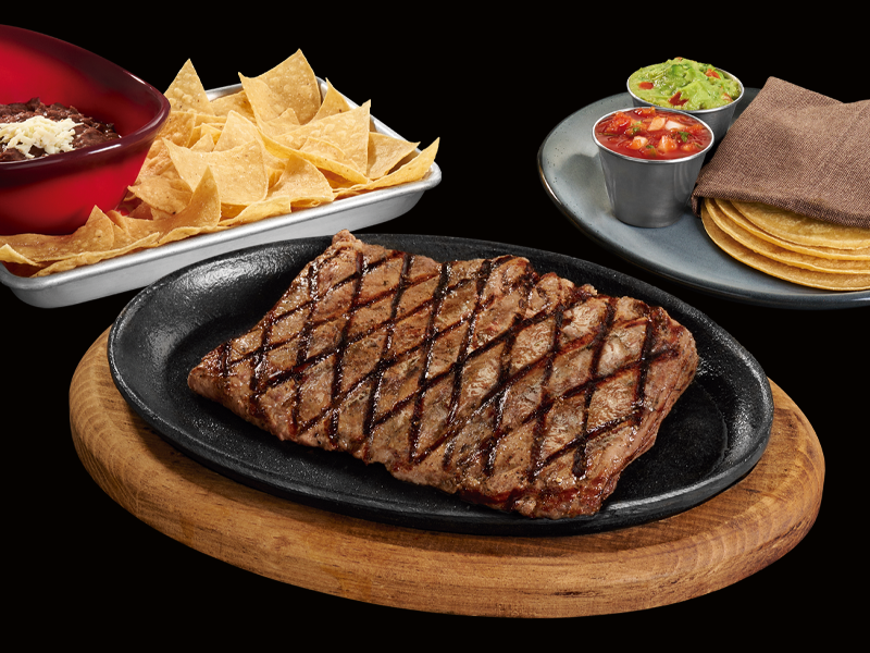 Applebee's MéxicoSecciones principales de la páginaJugoso corte Sirloin o Nueva York (280 g ). Se sirve con selección de dos guarniciones: puré de papa, vegetales al vapor, papas fritas o papas rojas sazonadas.