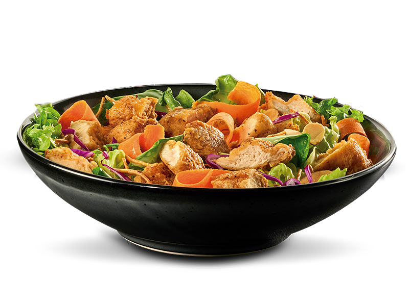 Applebee's MéxicoSecciones principales de la páginaMezcla de lechugas con almendras y tallarines de arroz tostado, bañada con nuestro aderezo oriental. Puedes elegir pollo empanizado (198 g) o pollo a la parrilla estilo Teriyaki. ¡Pura frescura!