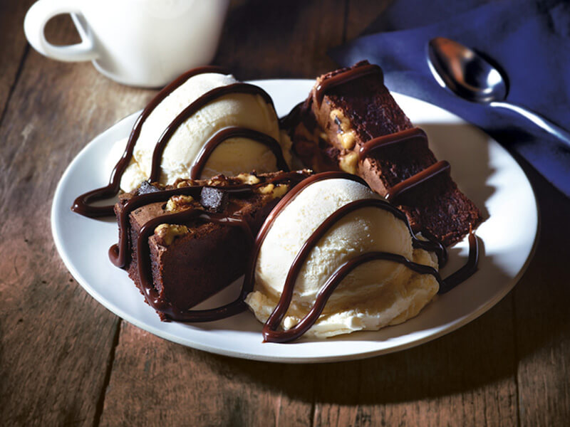Applebee's MéxicoSecciones principales de la páginaNuestro Fudge Brownie horneado. Servido con helado de vainilla y adornado con tiras de chocolate caliente.