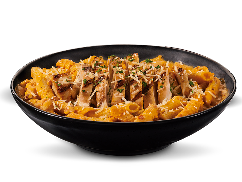 Applebee's MéxicoSecciones principales de la páginaPasta penne en salsa cremosa Messy al chipotle con tocino. Servida con pechuga de pollo a la parrilla (170 g) y queso parmesano. ¡Cremosa, picosita y abundante!
